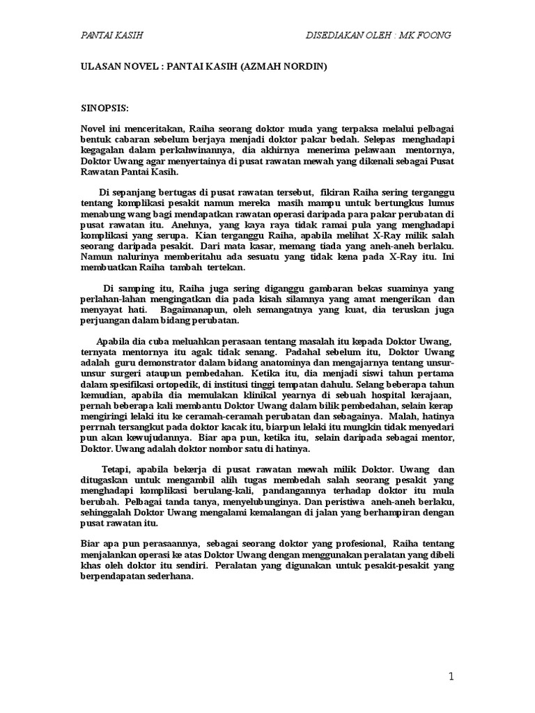 Pantai kasih azmah nordin sinopsis. Raiha tiba di rumahnya di sebuah apartment di tingkat enam milinya yang terletak tidak jauh dari Pusat Rawatan Pantai Kasih. Raiha seorang doktor pakar yang baharu menyertai Pusat Rawatan Pantai Kasih PRPK menghadapai masa sukar apabila sentiasa terkenang peristiwa silam.